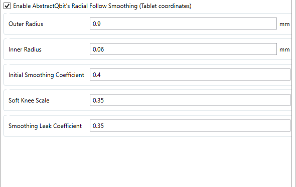 Tablet Settings | Smoothing Settings (OTD) | Grip