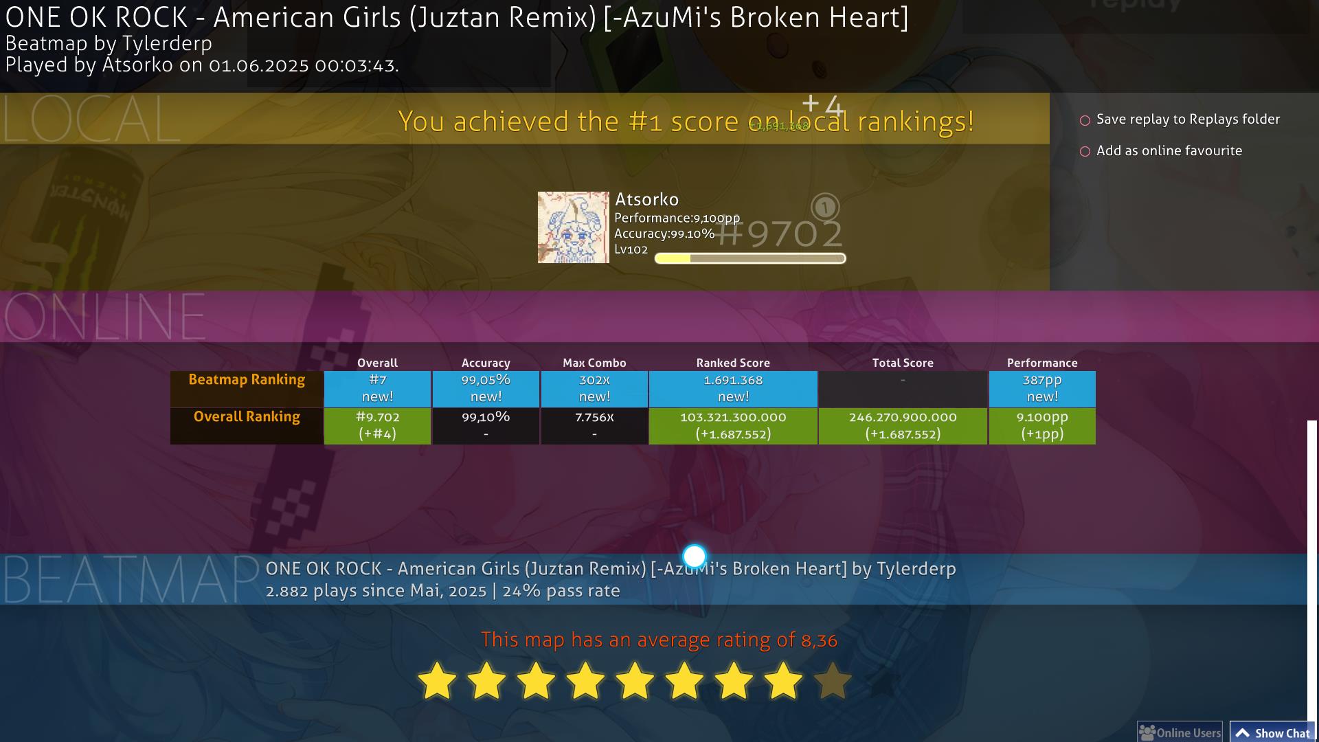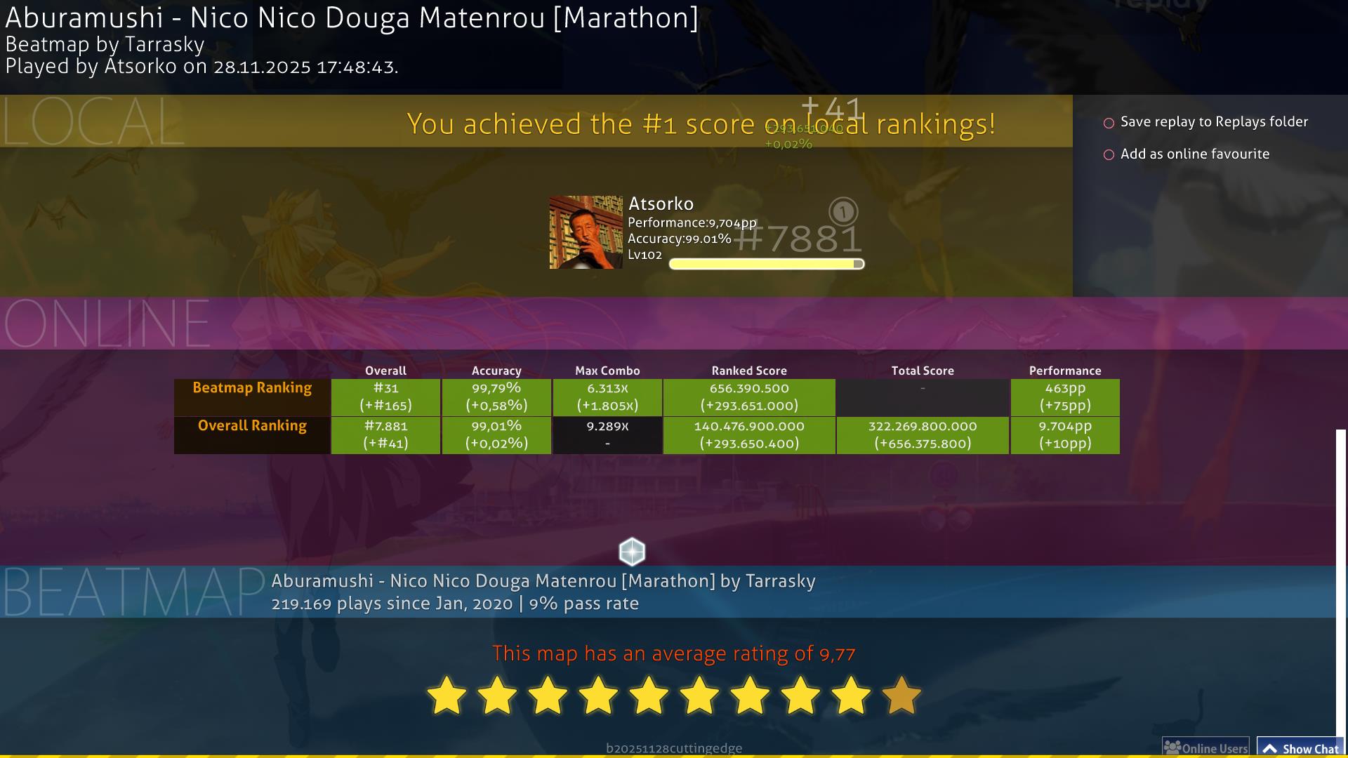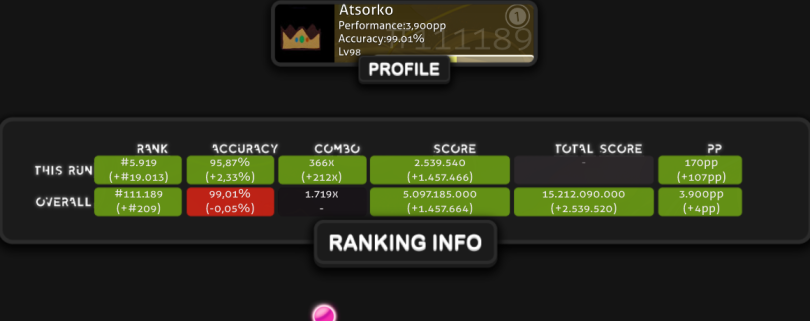 9600pp 08.10.2025 pp rework lol, gave me +101pp and i went to 9650pp, also my glory days former top play went to 500pp, pretty cool sadly no screenshot, i was playing and randomly noticed that i was suddenly #8.1k, then after some other plays i went to top 8k XD