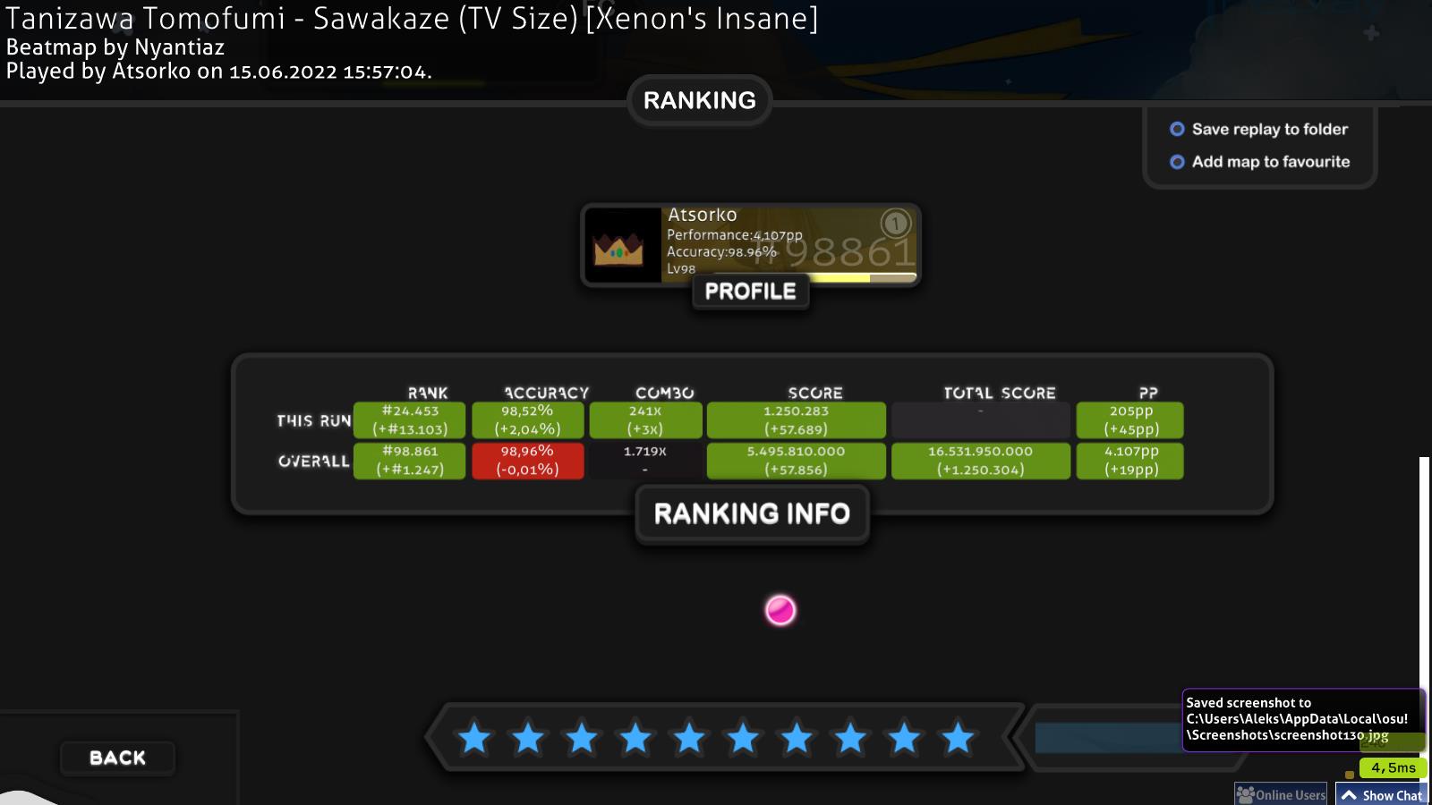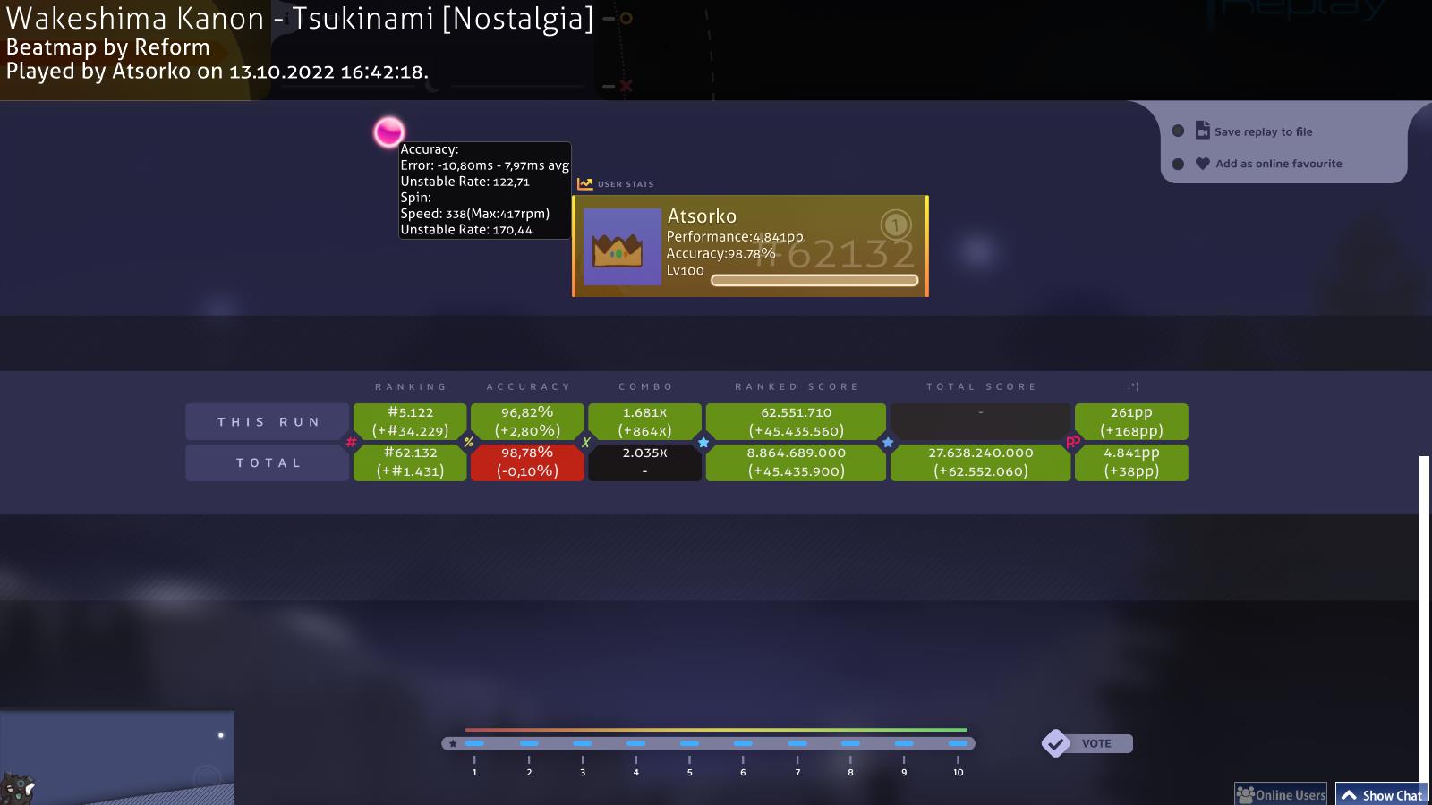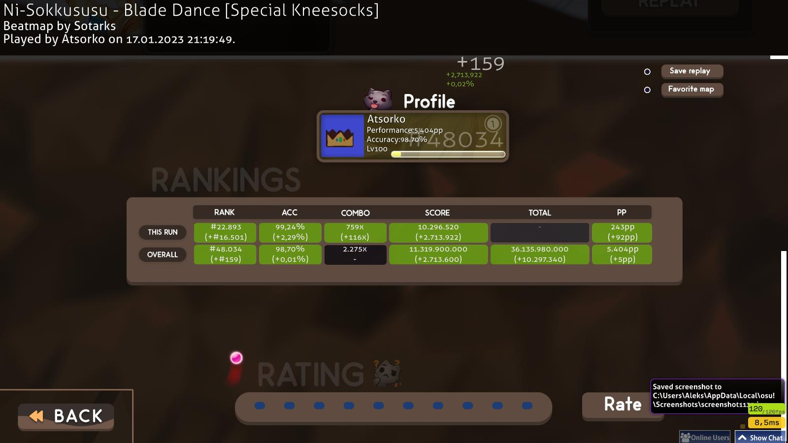 9600pp 08.10.2025 pp rework lol, gave me +101pp and i went to 9650pp, also my glory days former top play went to 500pp, pretty cool sadly no screenshot, i was playing and randomly noticed that i was suddenly #8.1k, then after some other plays i went to top 8k XD