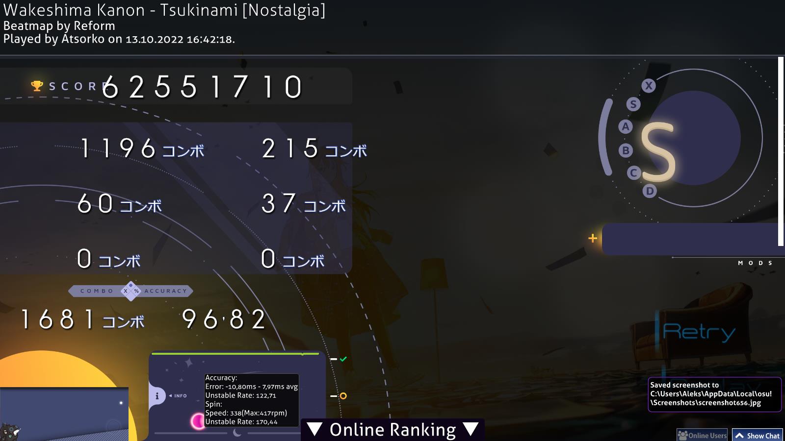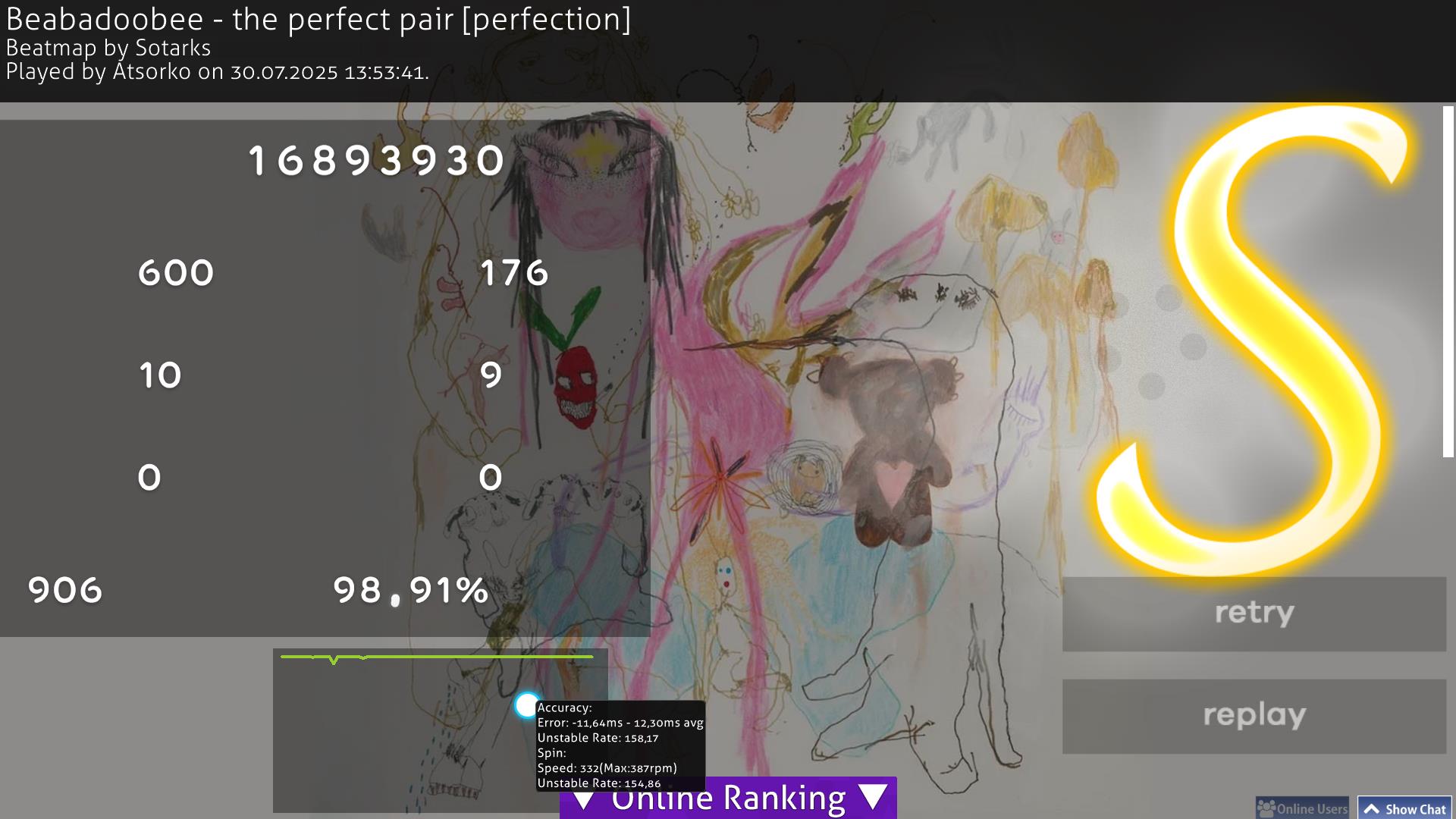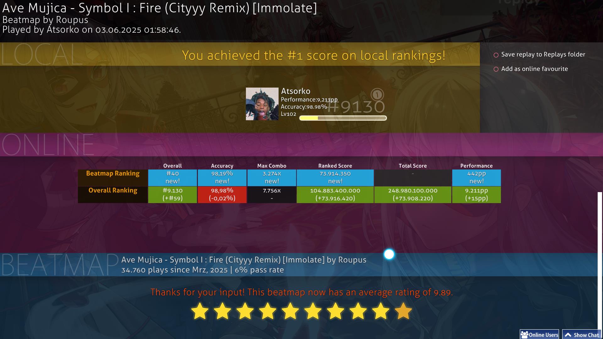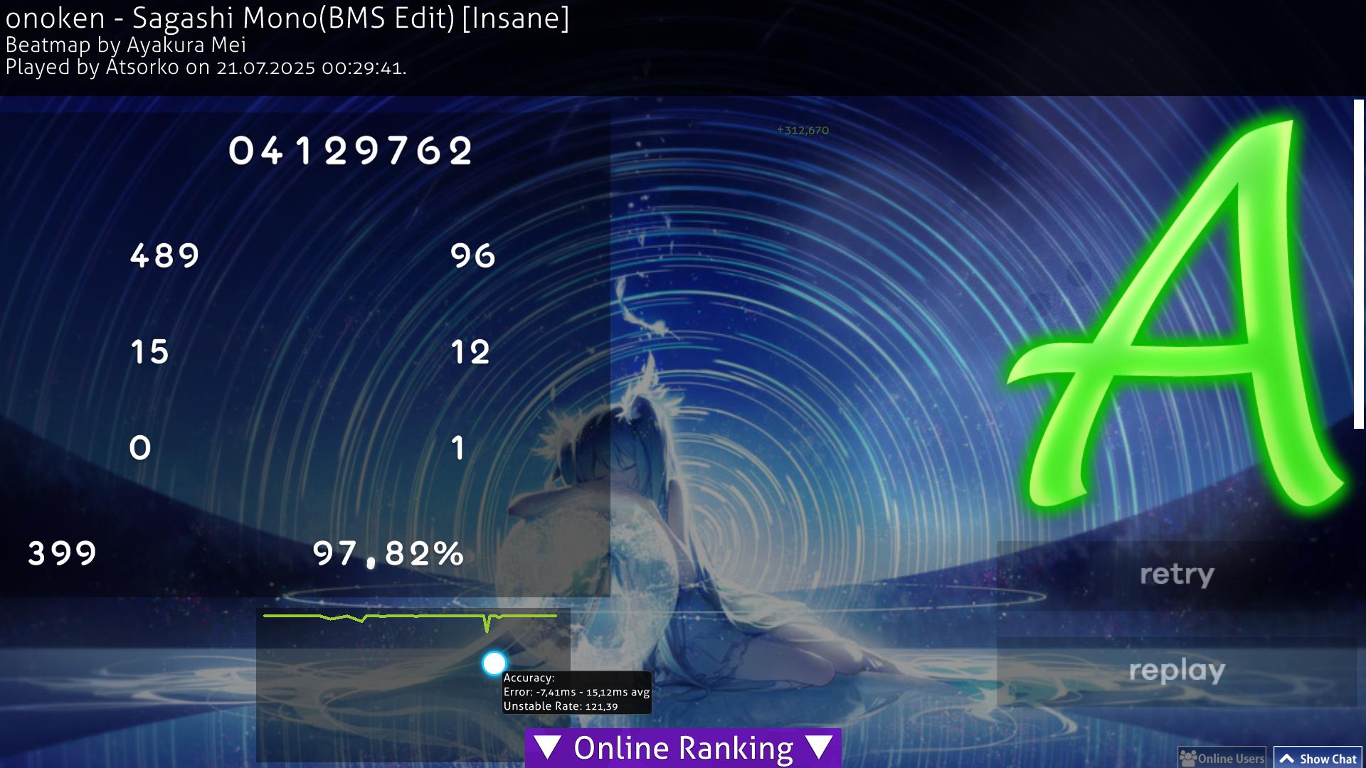 9400pp 05.07.2025 missed on the same fucking part of dropout compared to my other score bruh, also forgot to take a screenshot of the result screen oof