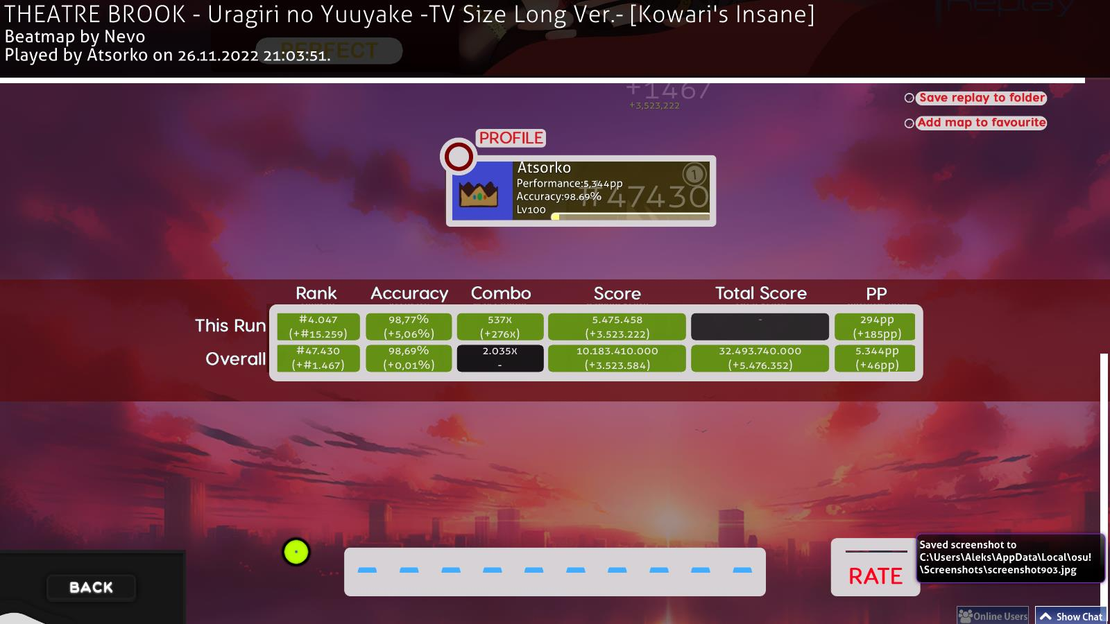 5300pp - 26.11.2022 uragiri is freelo 294pp/2nd top play at the time