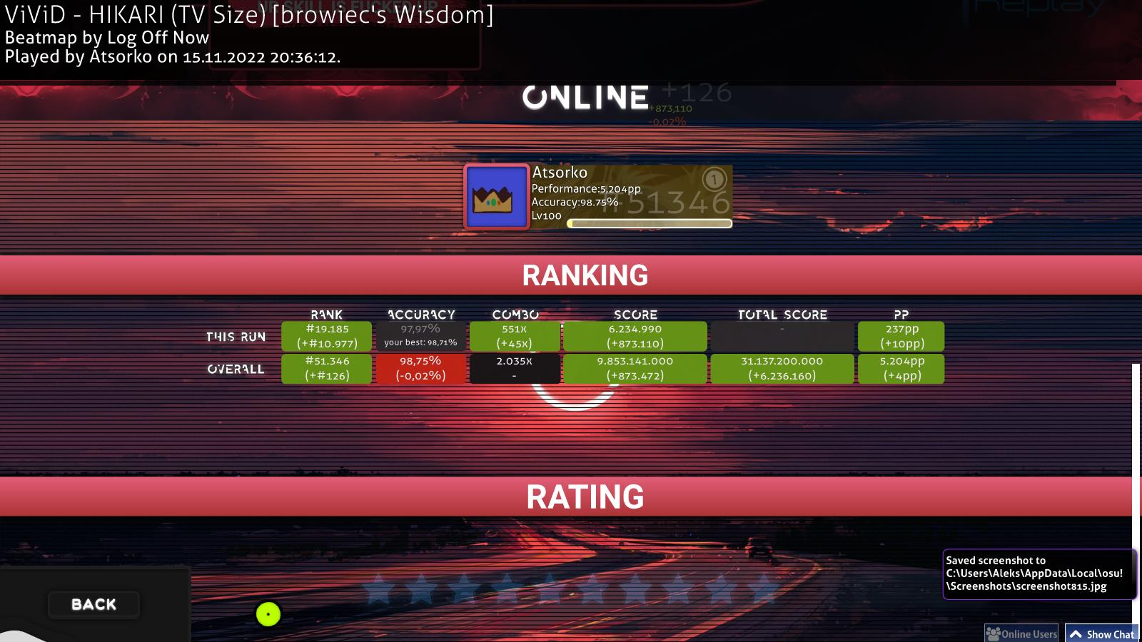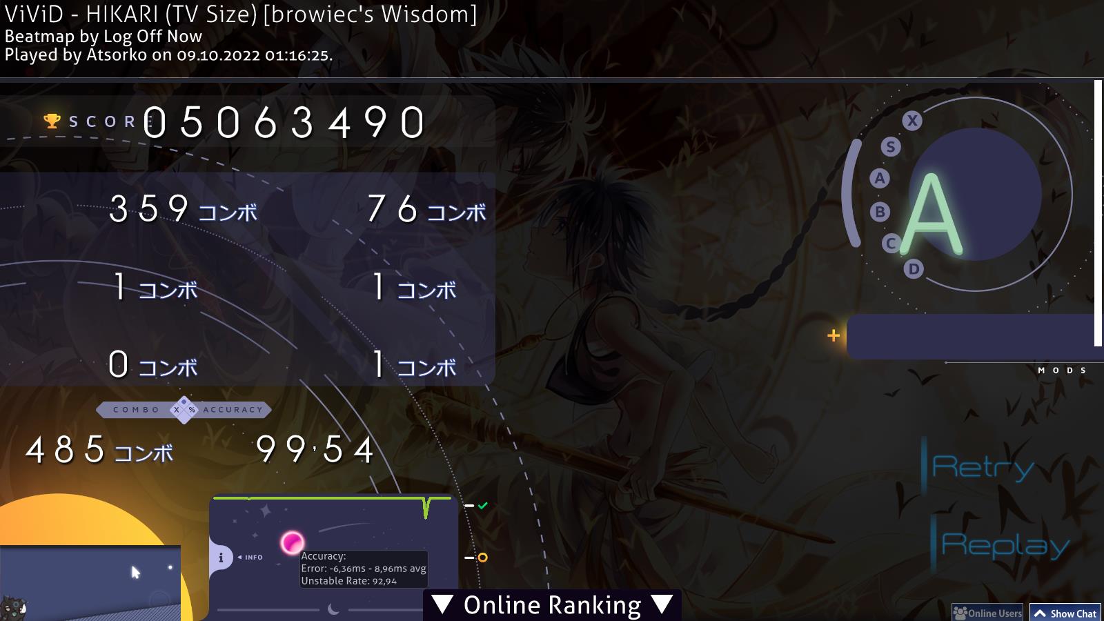 HIKARI [browiec's Wisdom] - 09.10.2022 - 250pp (set at 1am lol) | old screenshot ingame