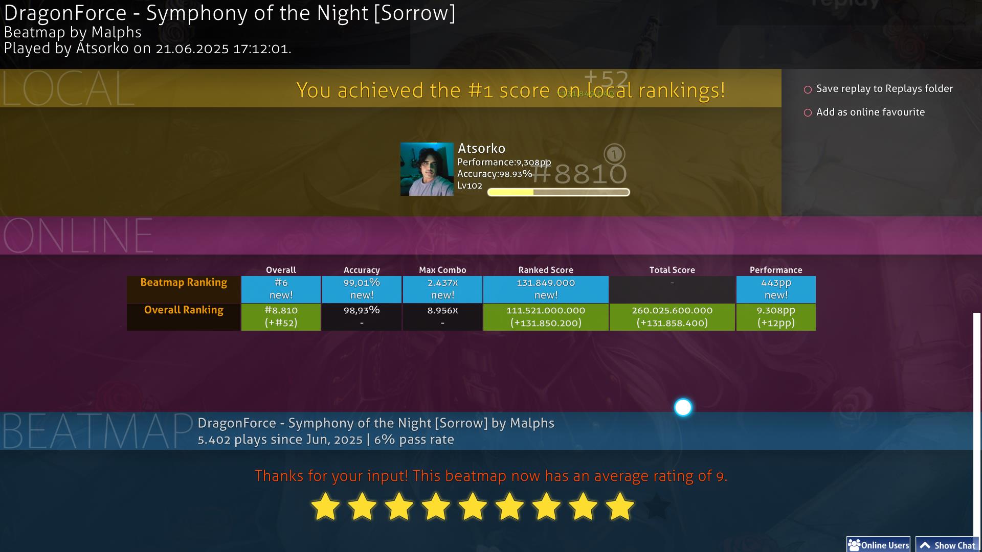 9300pp 21.06.2025 fc on newer Symphony of the Night, i honestly thought it was like 420 max but ig the weirdness of the streams made it 443pp :tasty: