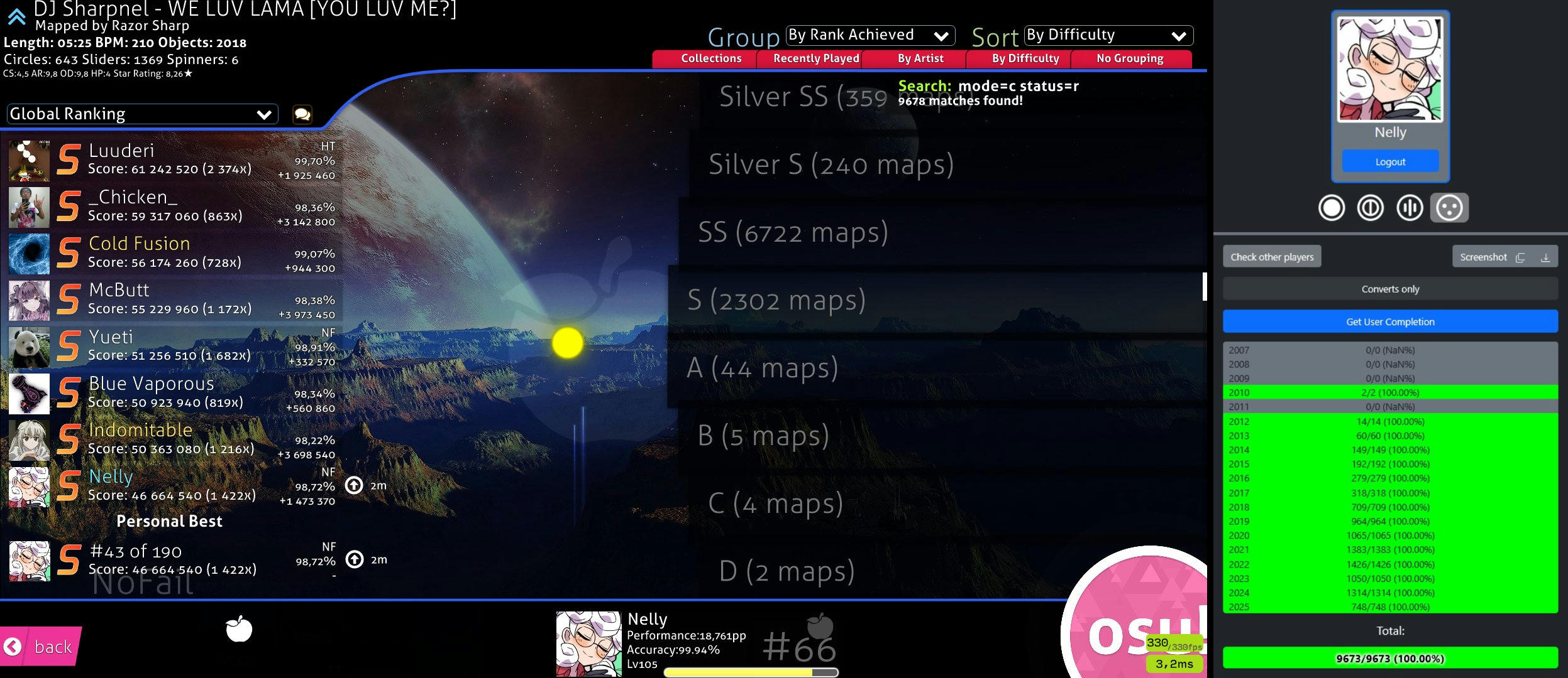 Passed every osu!catch ranked maps on 2nd June 2025 (9673 diffs)