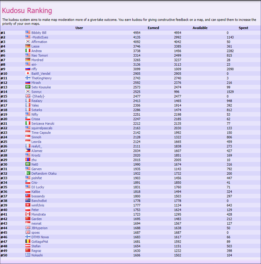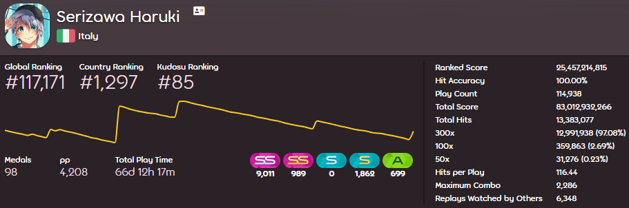 - Top 50 Kudosu Ranking (peak: #21): 18.12.2018 - 11.10.2021
