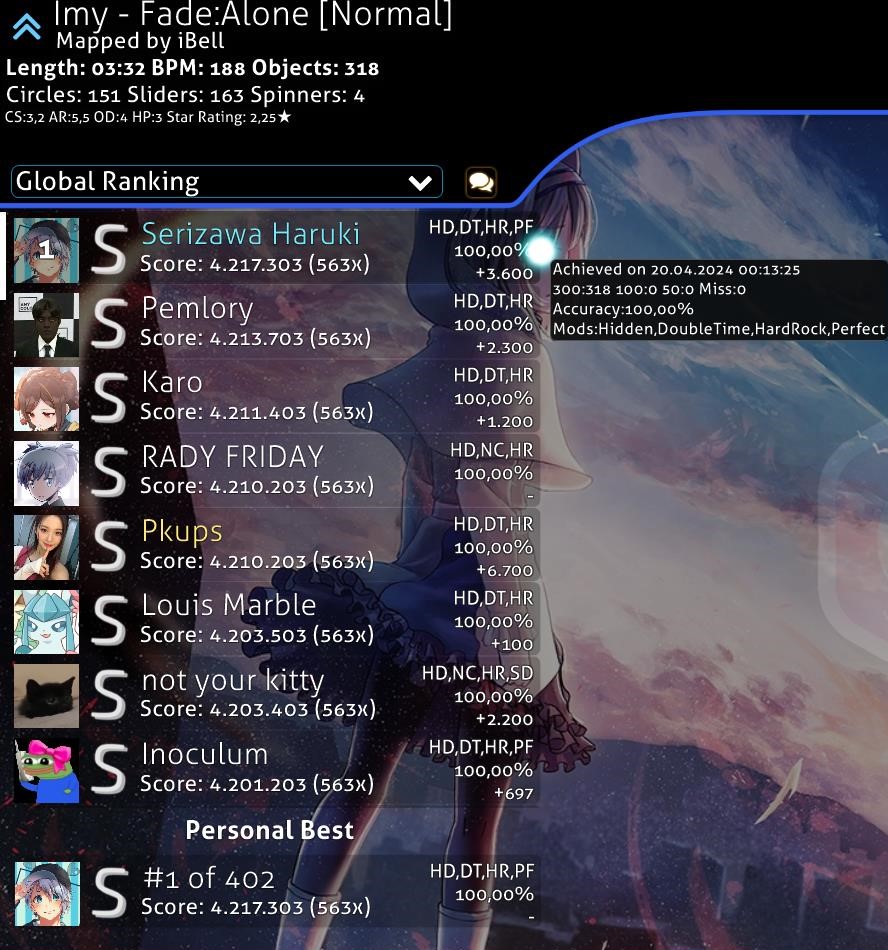 - 1 million playcount on a single difficulty: 21.07.2024