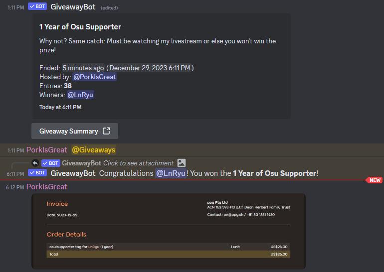 Thank you ParkIsGreat for gifting me 1 Years of supporter (my very first osu!supporter & "Xmas gift") (29/12/2023)