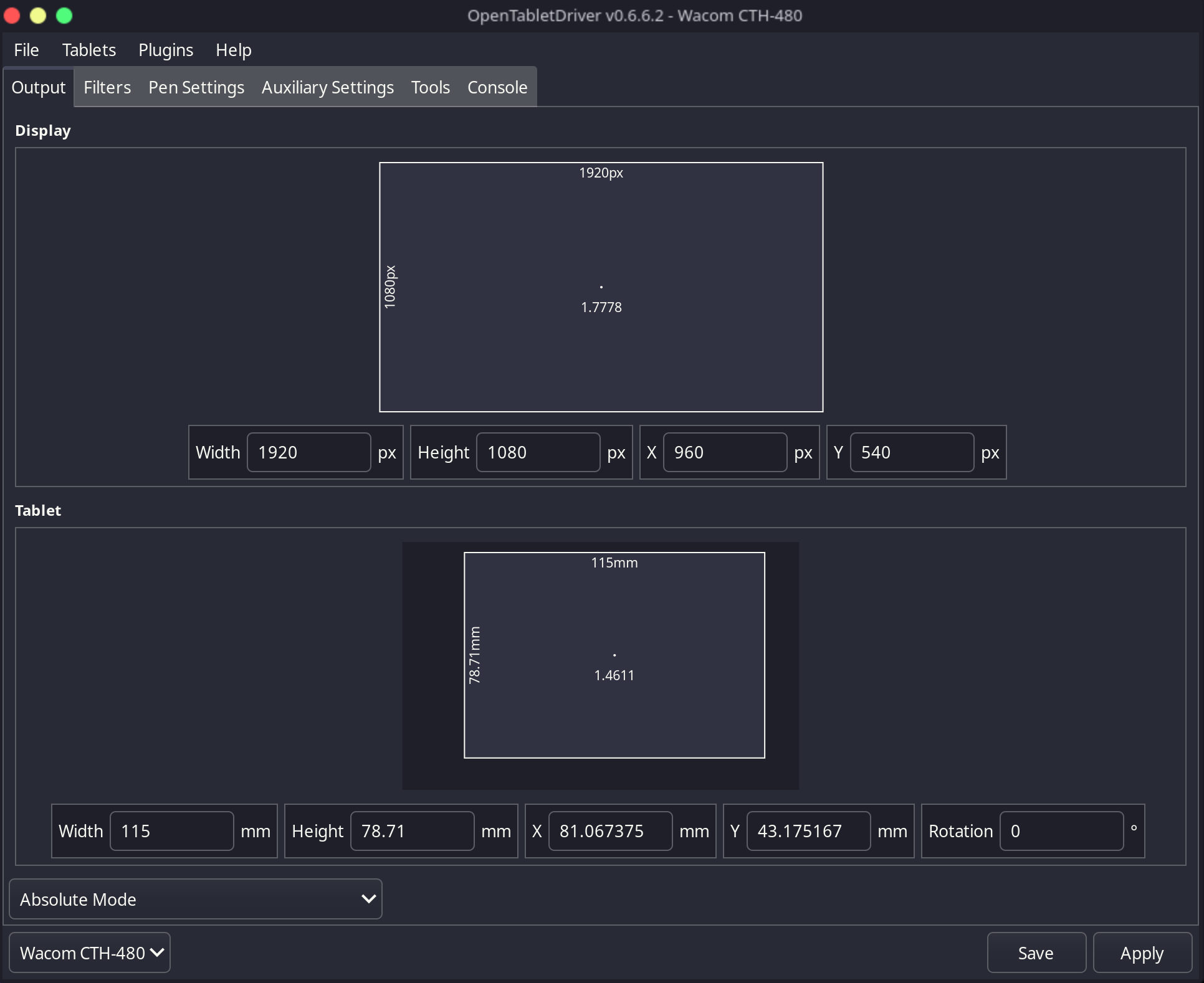 wacom cth 480 (hover, left-handed) area