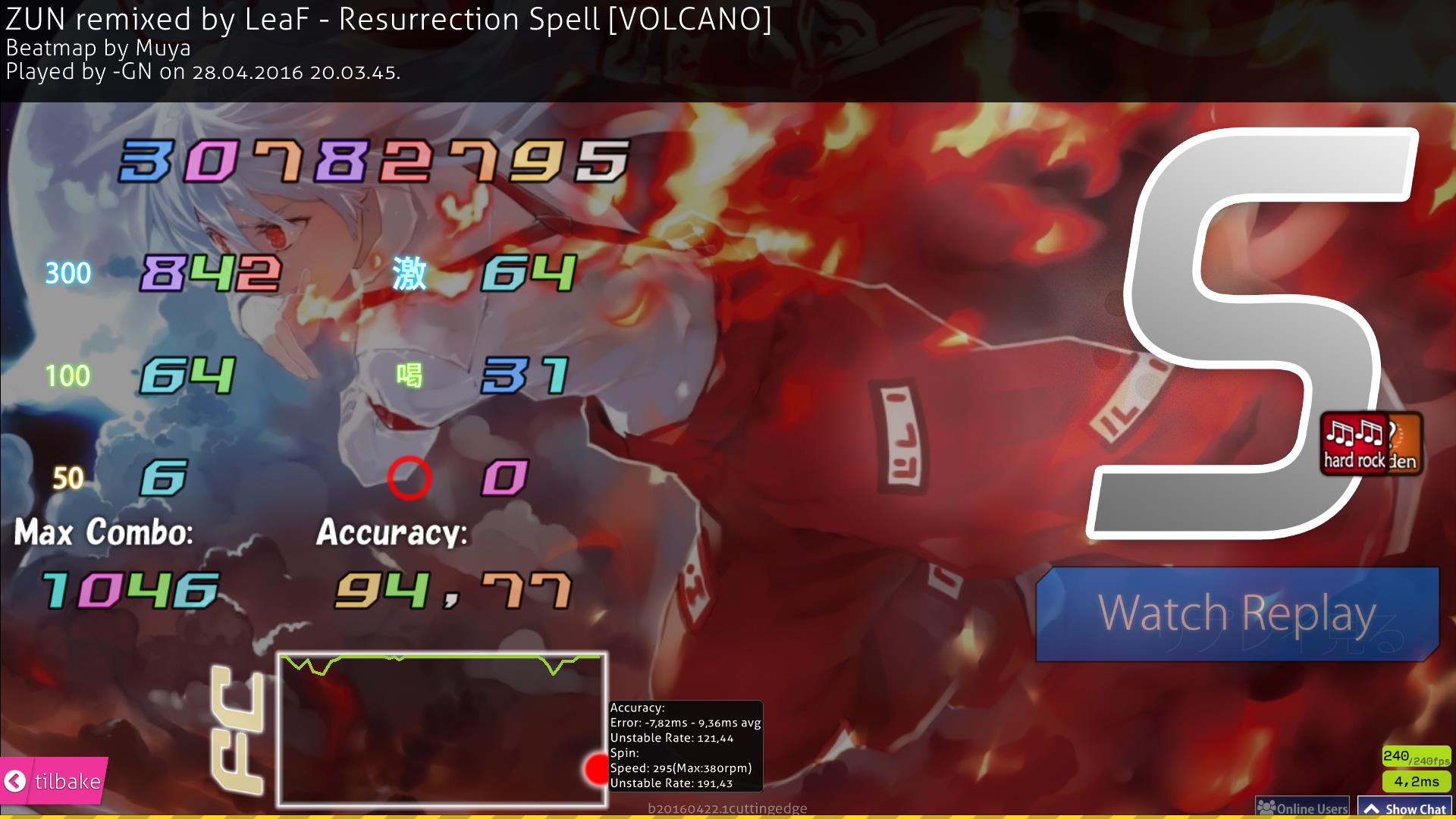 [X] get a >400pp HDHR score with below 95% acc - completed on 28.04.2016. 433pp from ZUN/LeaF - Resurrection Spell
